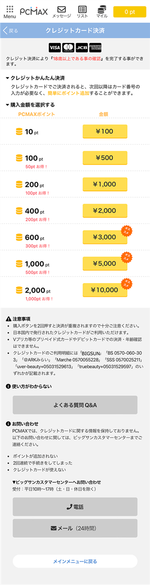 ただし、クレジットカード決済でポイントを購入すれば、すぐに年齢確認が不要ですよ。